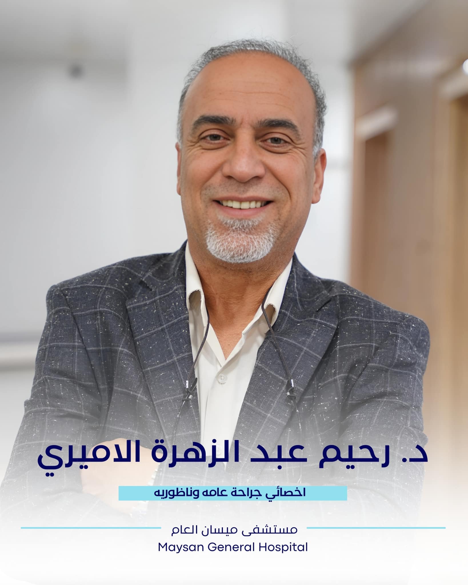 - تعلن مستشفى ميسان العام عن تواجد الدكتور (رحيم عبد الزهره الاميري) (أخصائي جراحة عامة وناظورية)لأجراء العمليات الجراحية داخل احدث صالات عمليات في محافظة ميسان