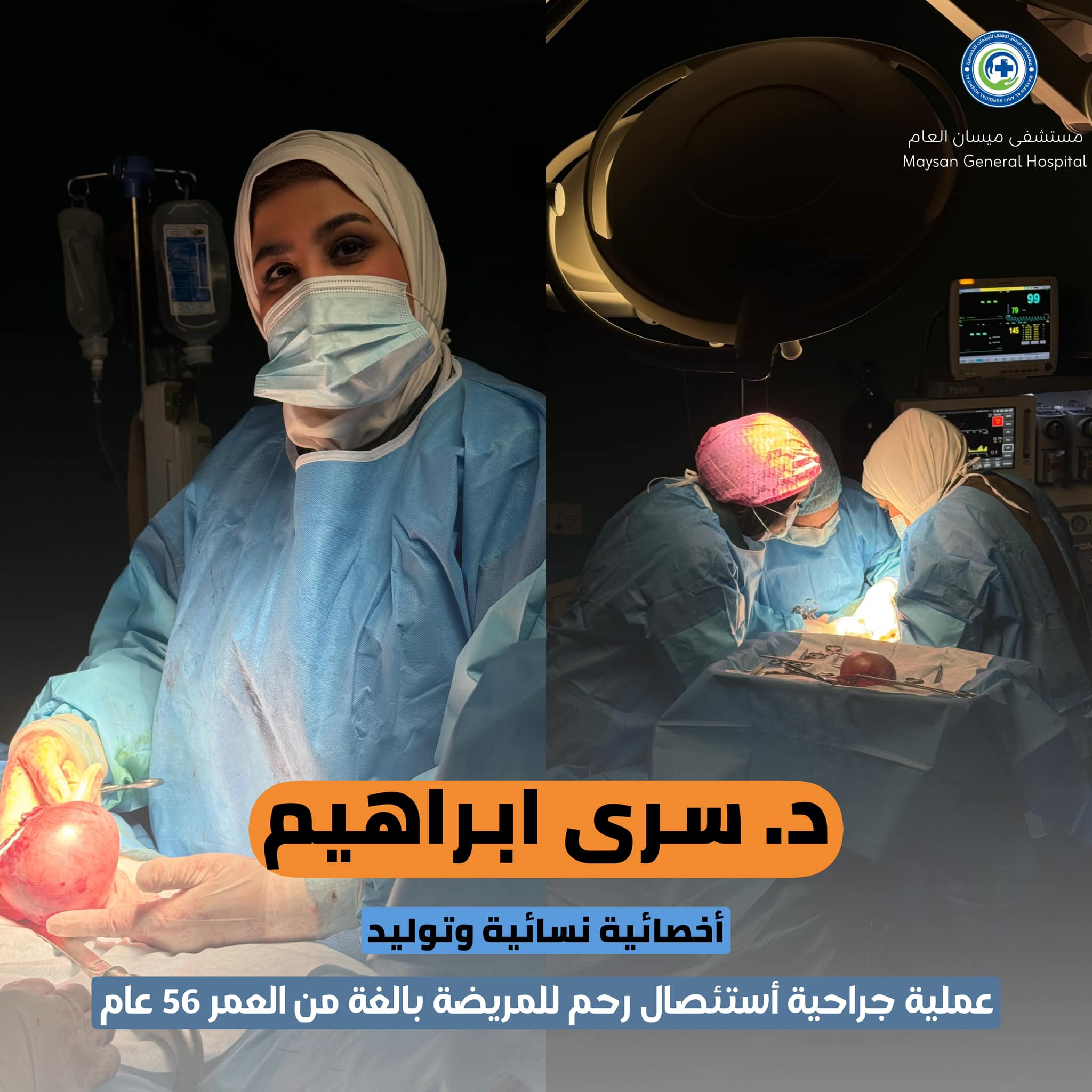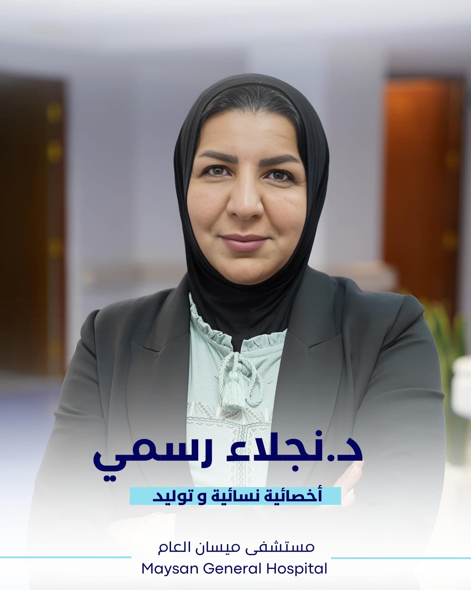 - تعلن مستشفى ميسان العام عن تواجد الدكتور (د.نجلاء رسمي ) (أخصائي نسائية وتوليد )لأجراء العمليات الجراحية داخل احدث صالات عمليات في محافظة ميسان
